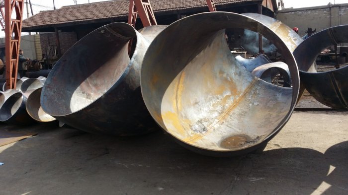 關(guān) 于大口徑薄壁 彎頭 ,我們所在進(jìn)行生產(chǎn)的時候要打支撐,那么打支撐的目的是什么呢? 所謂的打支撐我們利用的鋼管的支撐的原理,我們首先要把鋼板進(jìn)行 搞圓形,在進(jìn)行搞